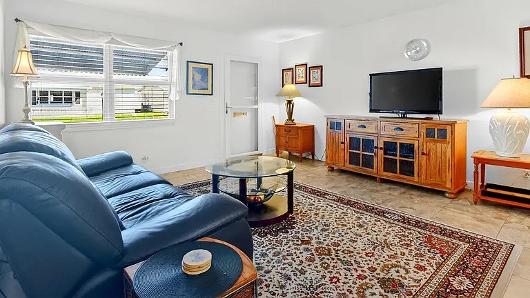 Welcome to Palm Beach Leisureville, a 55+ community! This inviting 1-story waterfront home offers 2 bedrooms, 2 bathrooms, an